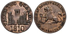 Gibraltar. 2 quartos. 1810. (Km-Tn 4.1). Ae. 6,57 g. Almost XF. Est...35,00.