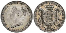 Italy. Parma. Maria Luigia. 5 lire. 1815. Milano. (Km-30). (Mont-115). Ag. 24,85 g. Patina. Minor nicks on edge. VF/Choice VF. Est...120,00.