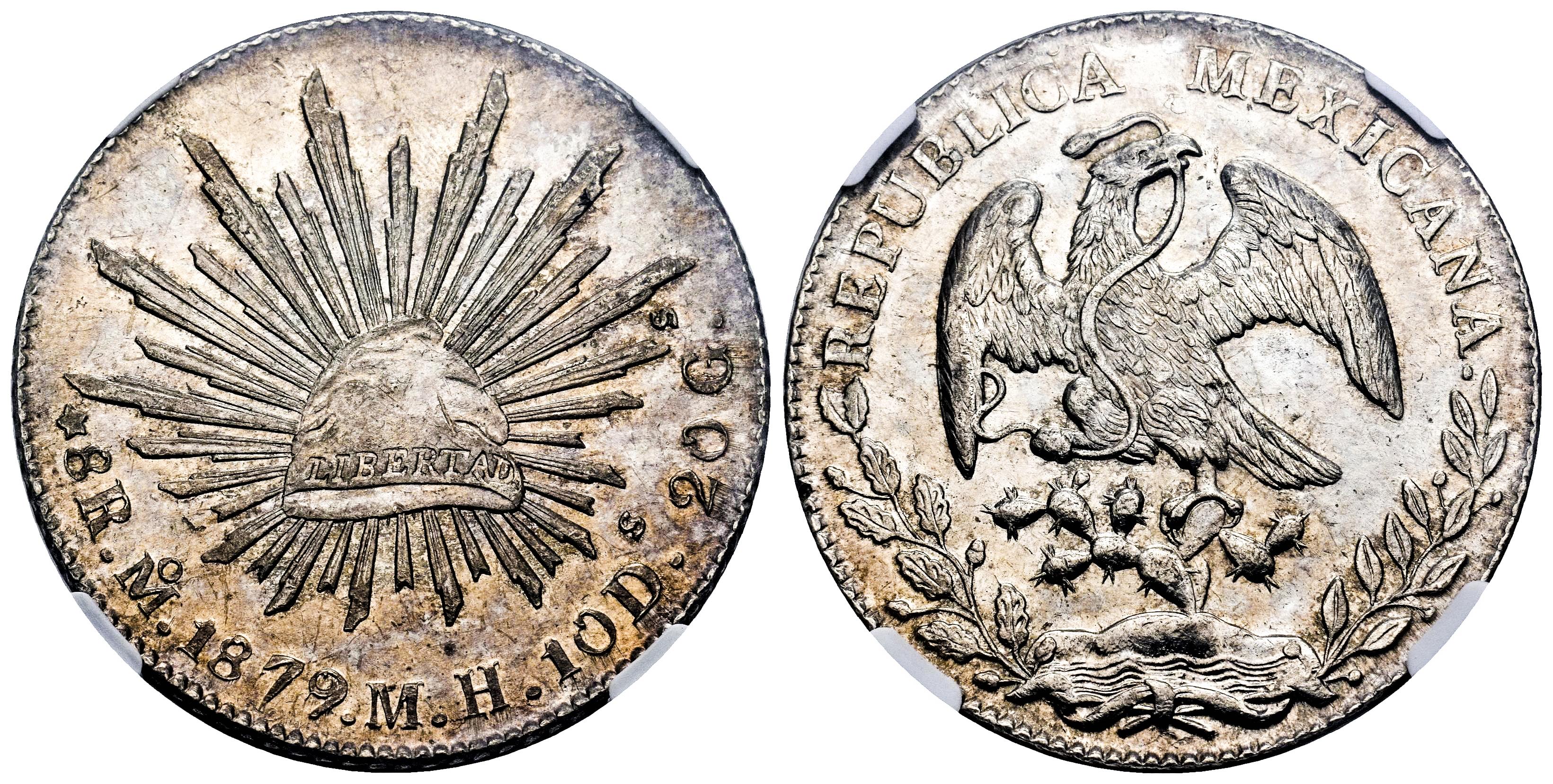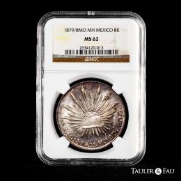 Mexico. 8 reales. 1879/8. Mexico. MH. (Km-377). Ag. Clear overdate. Original luster. Attractive tone. Slabbed by NGC as MS 62. Est...300,00.