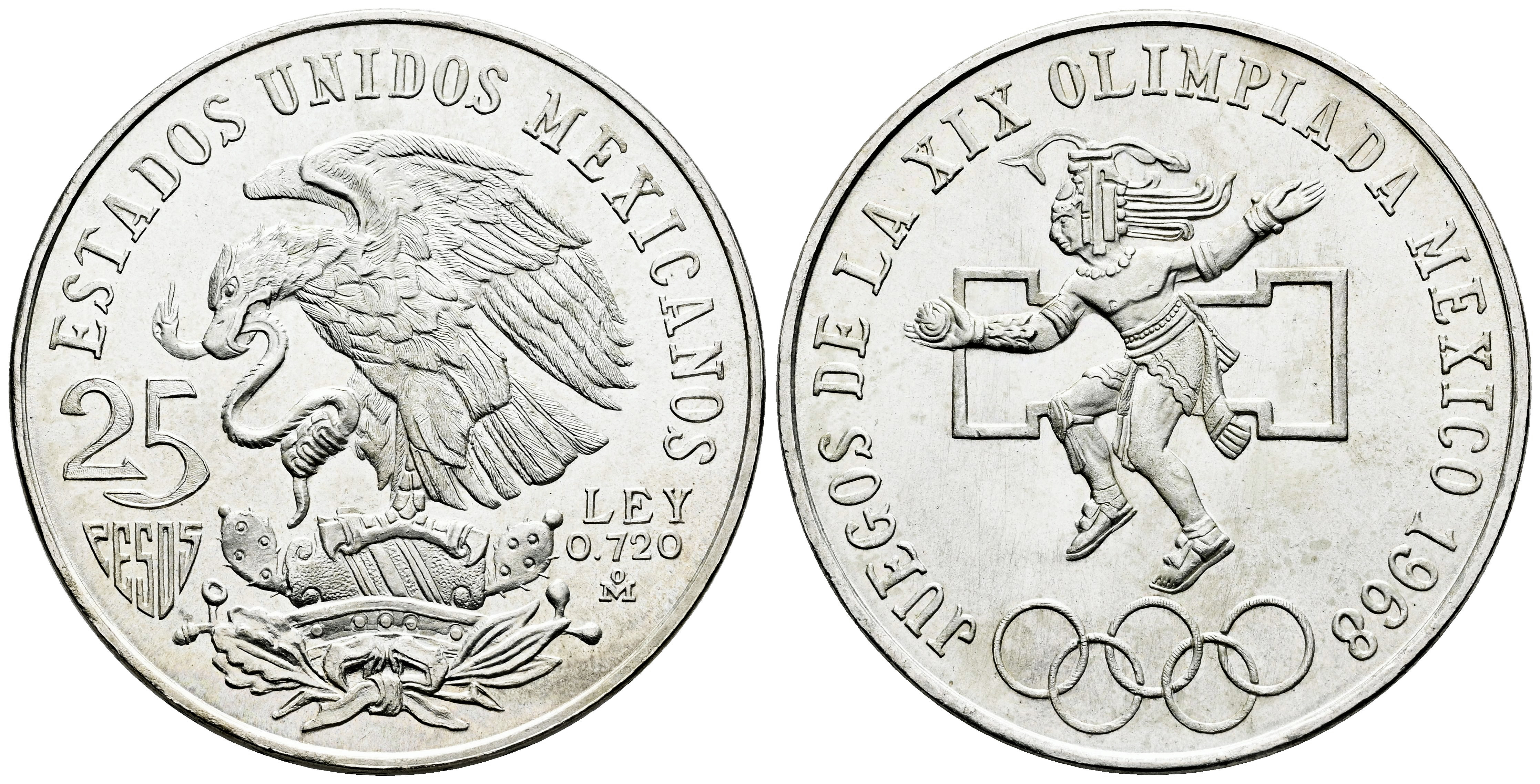 Mexico. 25 pesos. 1968. Mexico. (Km-479.1). Ag. 22,42 g. Olimpic Games. Original luster. Almost MS. Est...45,00.