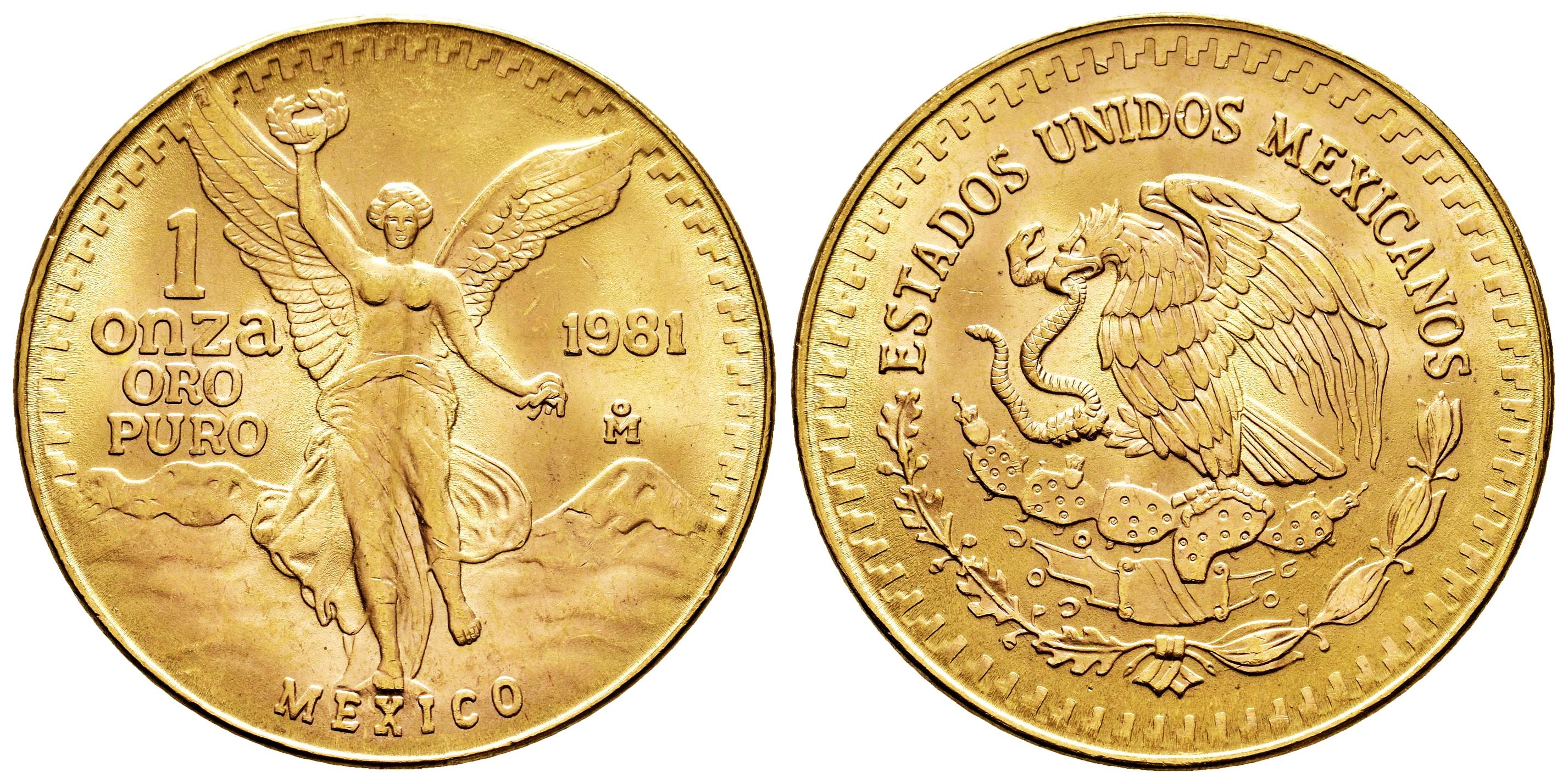 Mexico. 1 ounce. 1981. Mexico. (Km-489). (Fr-178). Au. 34,58 g. Faint scratches. Original luster. Almost MS. Est...3000,00.