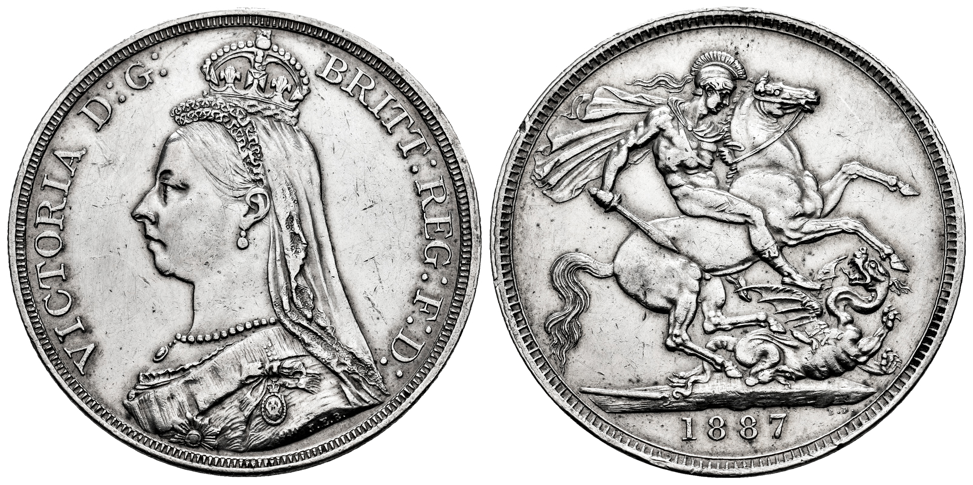 Great Britain. Victoria. 1 crown. 1887. (Km-765). (S-3924). Ag. 28,26 g. Minor nicks on edge. Slightly cleaned. XF. Est...90,00.