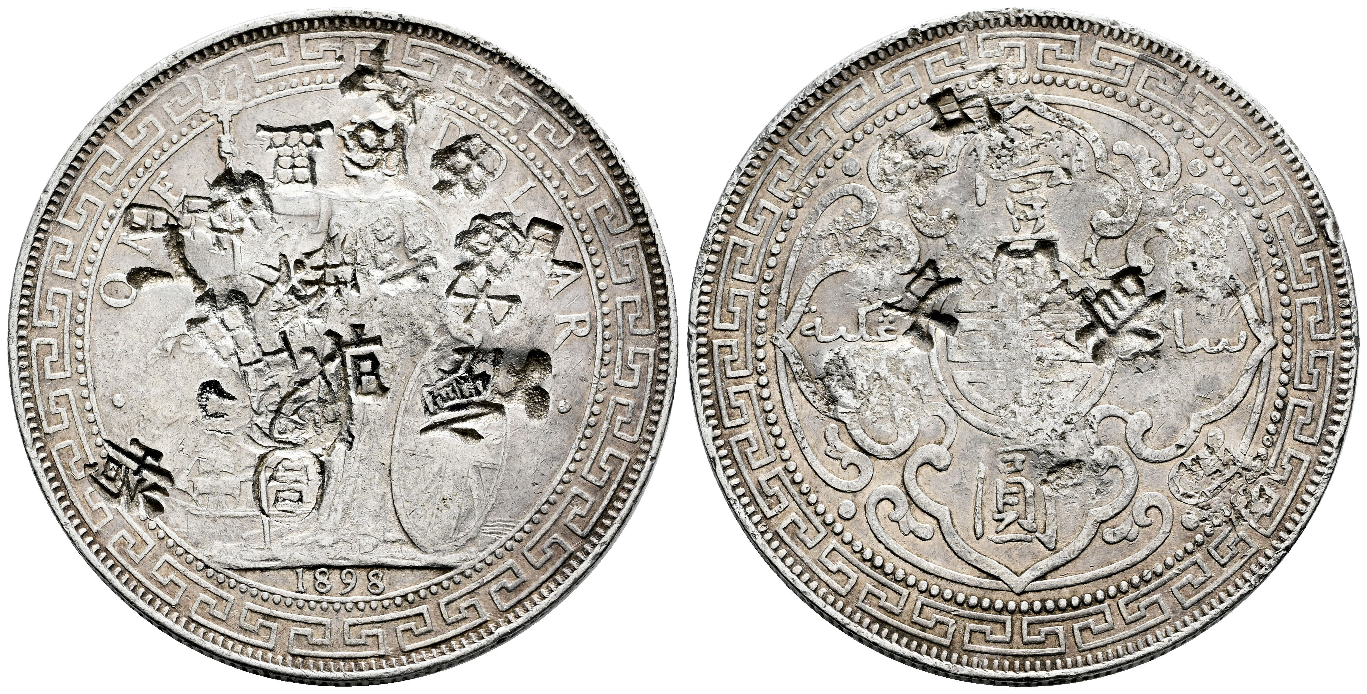 Great Britain. Victoria. Trade dollar. 1898. Bombay. (Km-Tn5). Ag. 26,86 g. Multiple chop marks. Almost XF. Est...90,00.