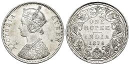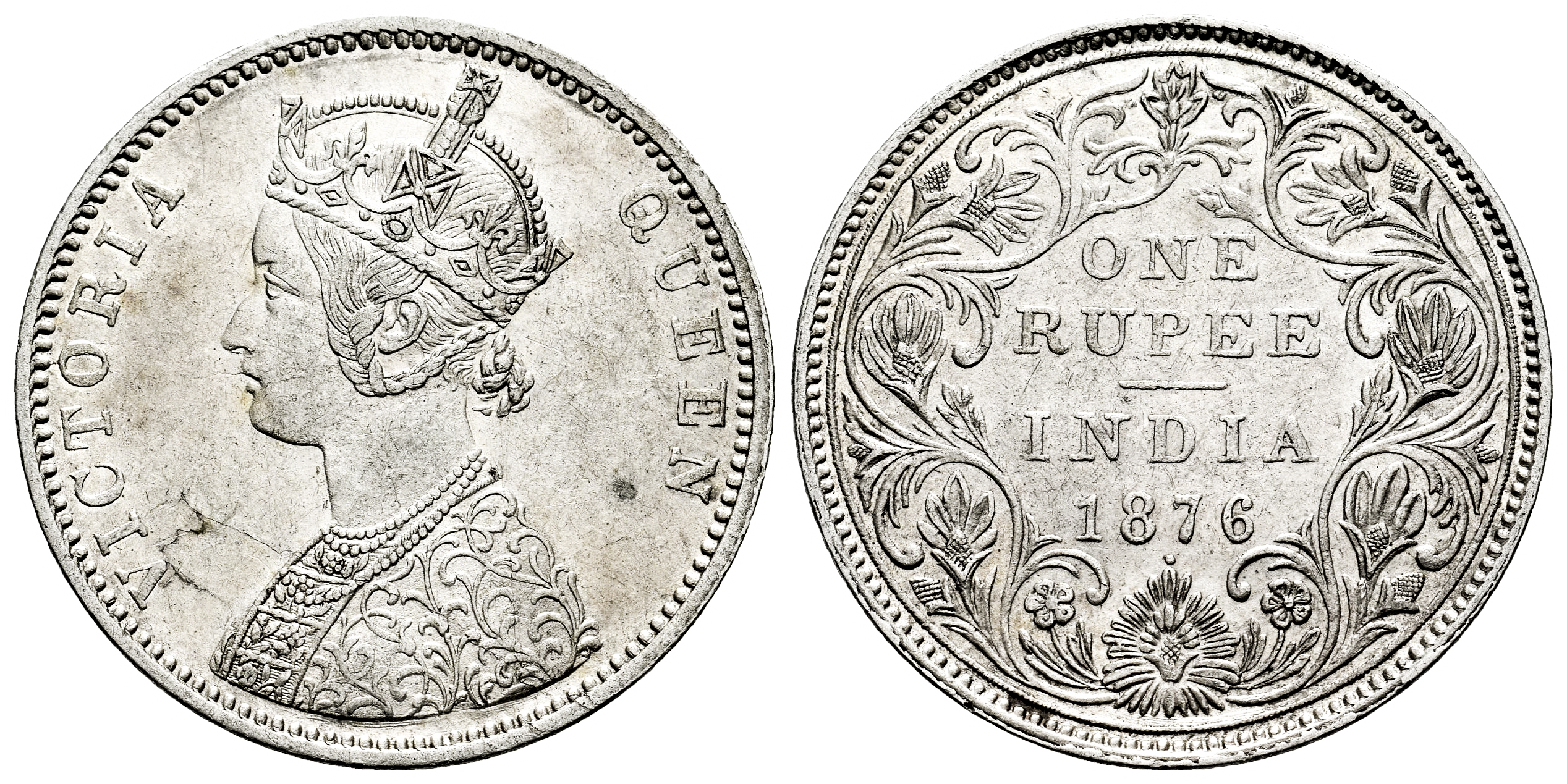 British India. Victoria. 1 rupee. 1876. Bombay. (Km-473.2). Ag. 11,64 g. With a pellet on the flower. With some original luster remaining. XF/AU. Est...90,00.