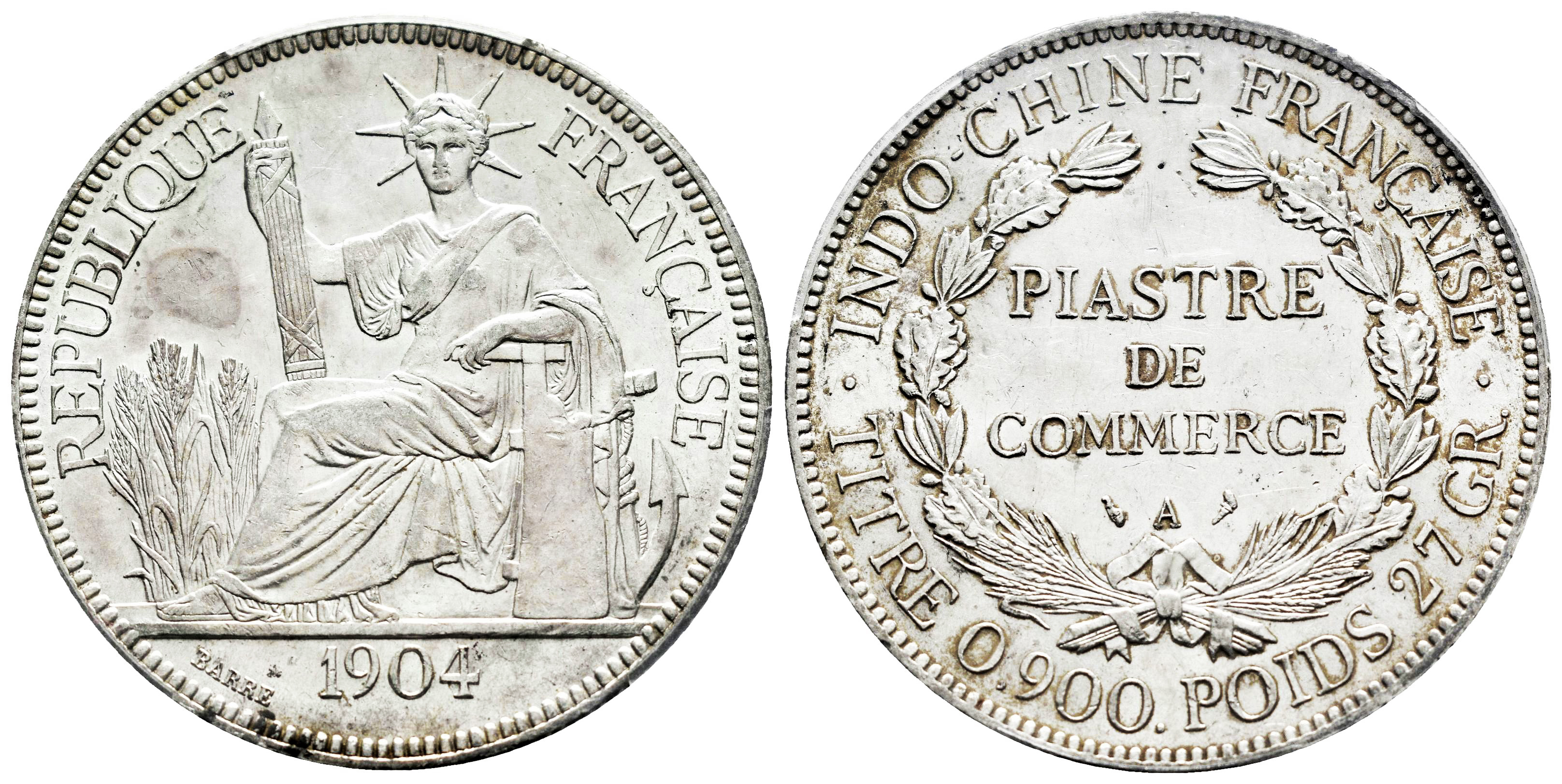 French Indochina. 1 piastra. 1904. Paris. A. (Km-5a.1). Ag. Slabbed by PCGS as MS 61. Original luster. Est...200,00.