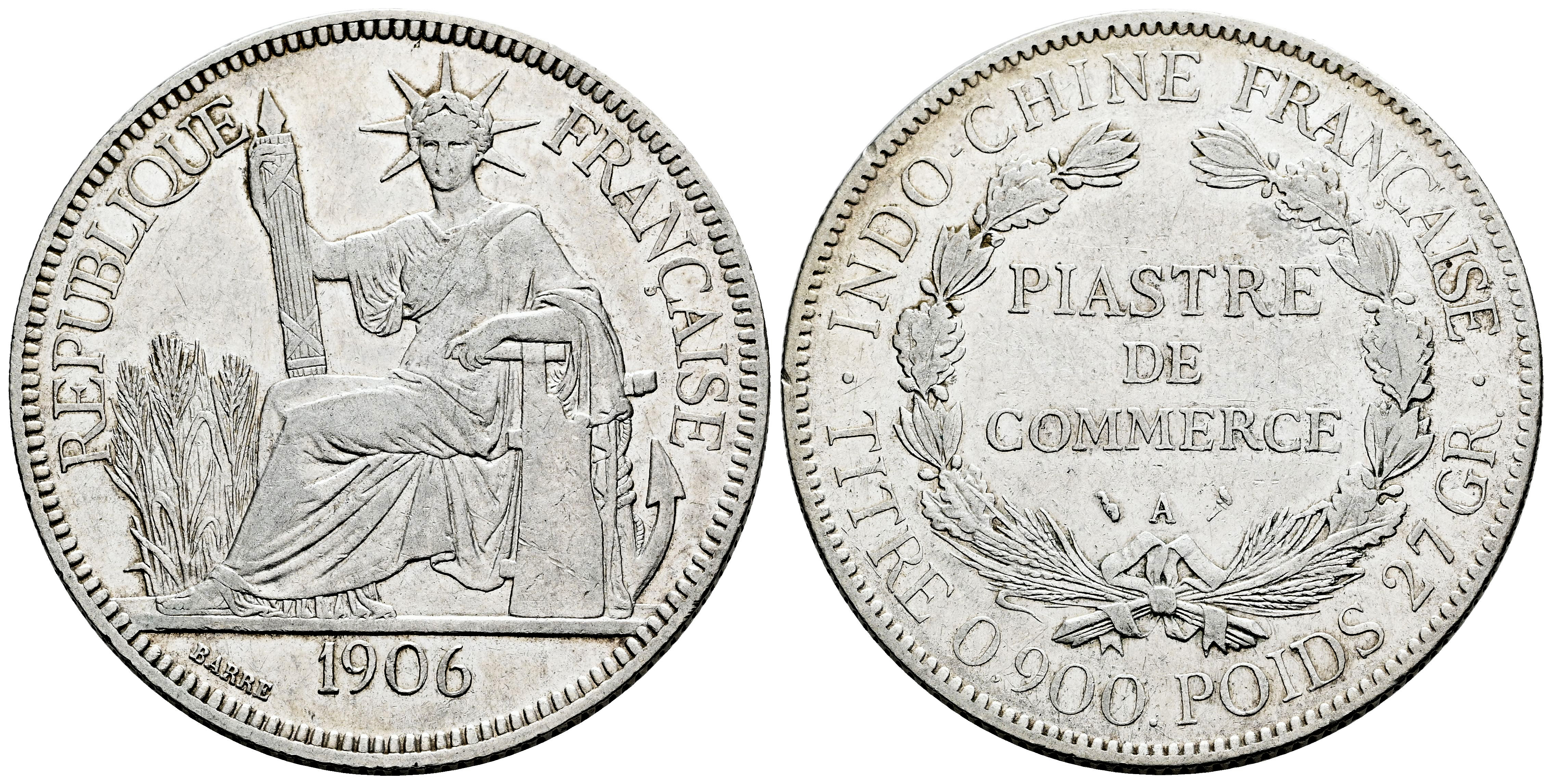 French Indochina. 1 piastra. 1906. Paris. A. (Km-5a.1). Ag. 26,93 g. Hairlines. Traces of luster. Choice VF. Est...50,00.