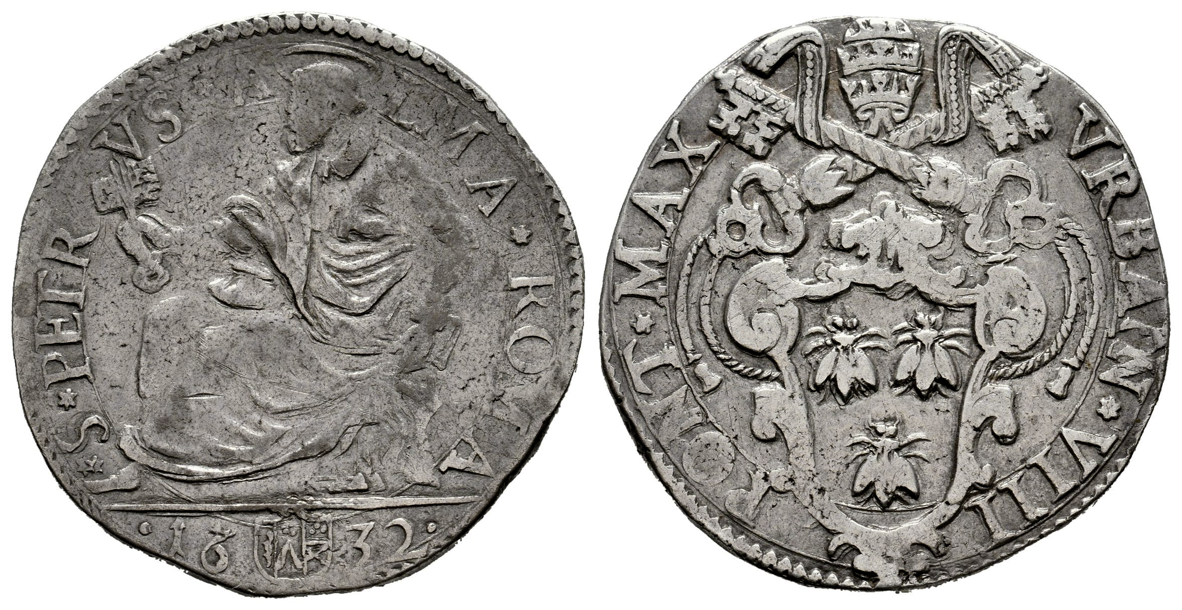 Italy. Papal States. Urbanus VIII Barberini (1623-1644). Testone. 1632. Rome. A. (Muntoni-53). Ag. 9,39 g. Scarce. Almost VF. Est...75,00.