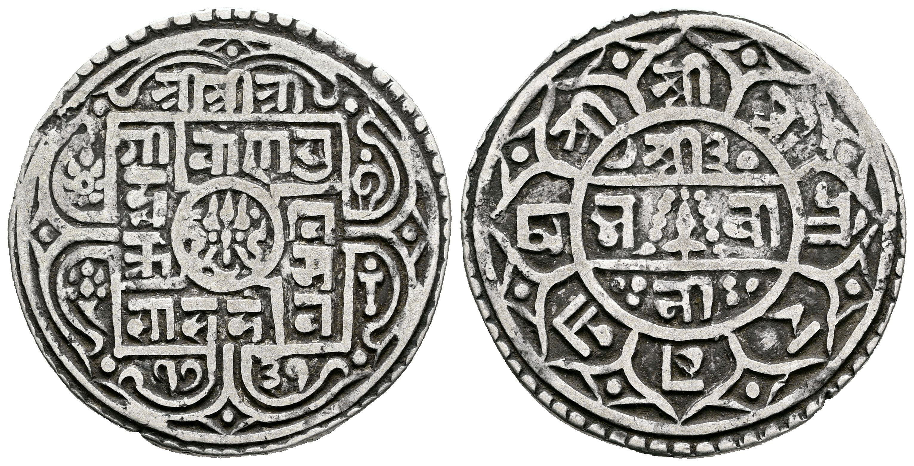 Nepal. 1 mohar. SE 1731 (1809). Rajendra Bikram Shah. (Km-529). Ag. 5,40 g. Almost VF. Est...35,00.