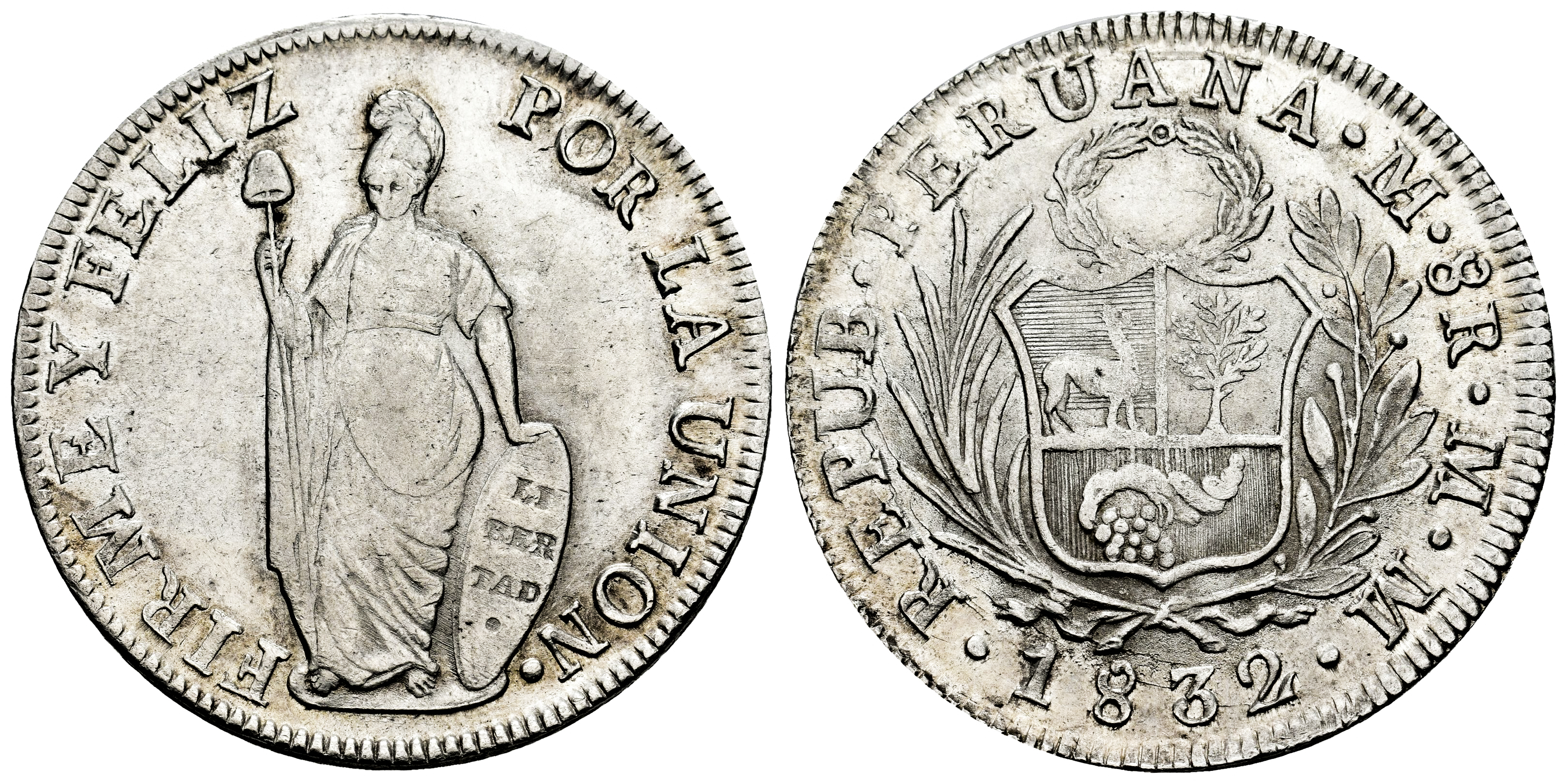 Peru. 8 reales. 1832. Lima. MM. (Km-142.3). Ag. 27,26 g. Traces of luster. Choice VF/Almost XF. Est...120,00.