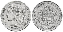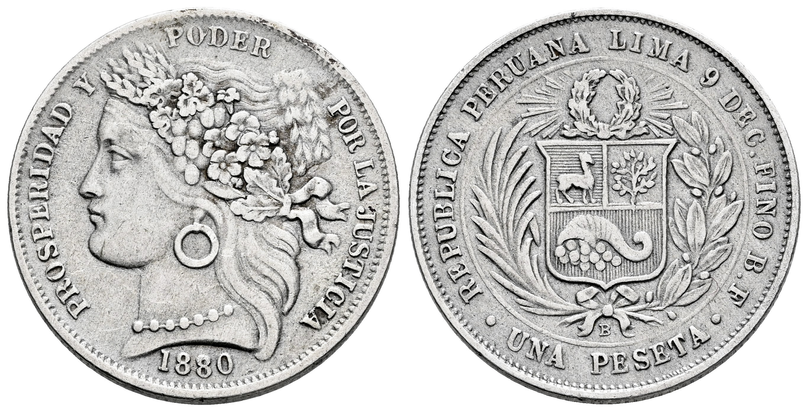 Peru. 1 peseta. 1880. Lima. BF. (Km-200.2). Ag. 5,20 g. With dot after B. Cleaned. Almost VF. Est...35,00.