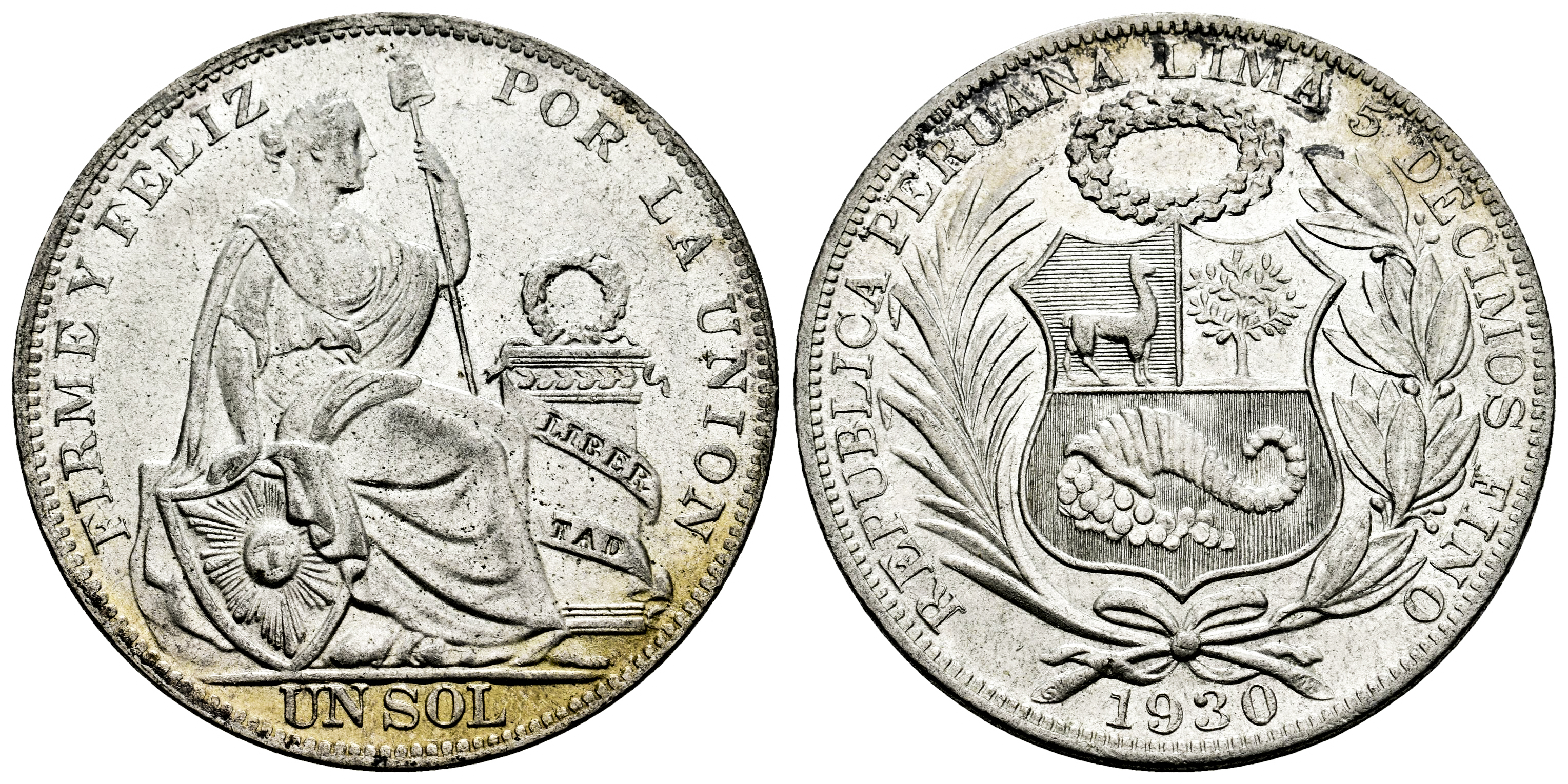 Peru. 1 sol. 1930. Lima. (Km-218.2). Ag. 25,11 g. Original luster. Almost MS. Est...70,00.