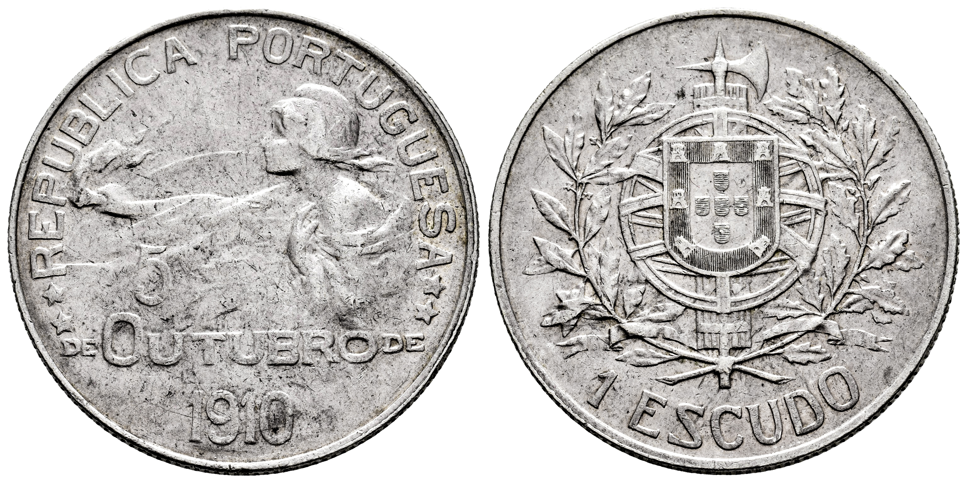 Portugal. 1 escudo. 1910. (Km-560). (Gomes-22.01). Ag. 24,85 g. October 5, Anniversary of the Republic. Almost XF. Est...90,00.
