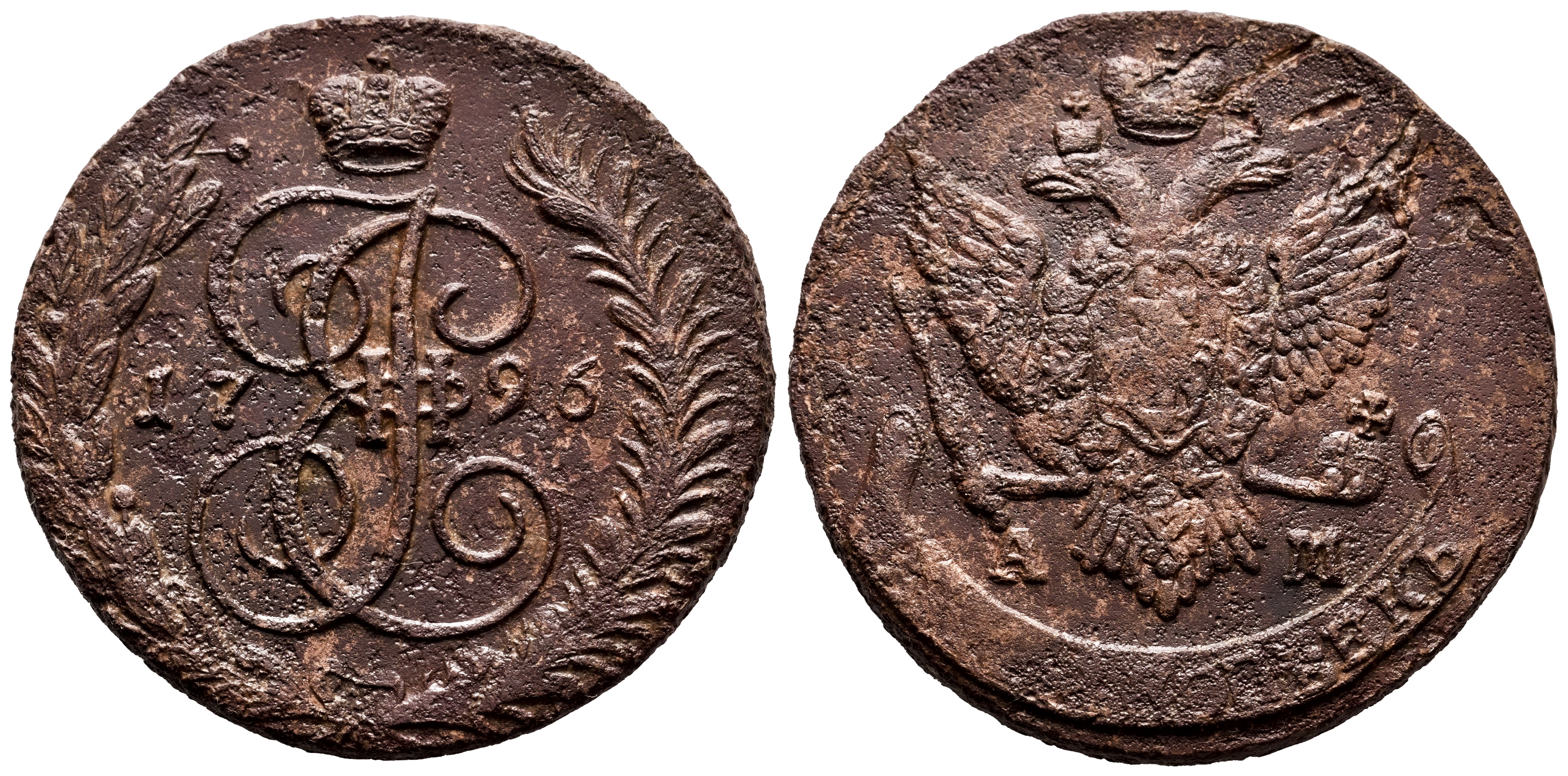 Russia. Catherine II (1762-1796). 5 kopecks. 1796. AM. (Km-C#59.2). (Bitkin-867). Ae. 48,45 g. Minor rust. Almost XF. Est...60,00.