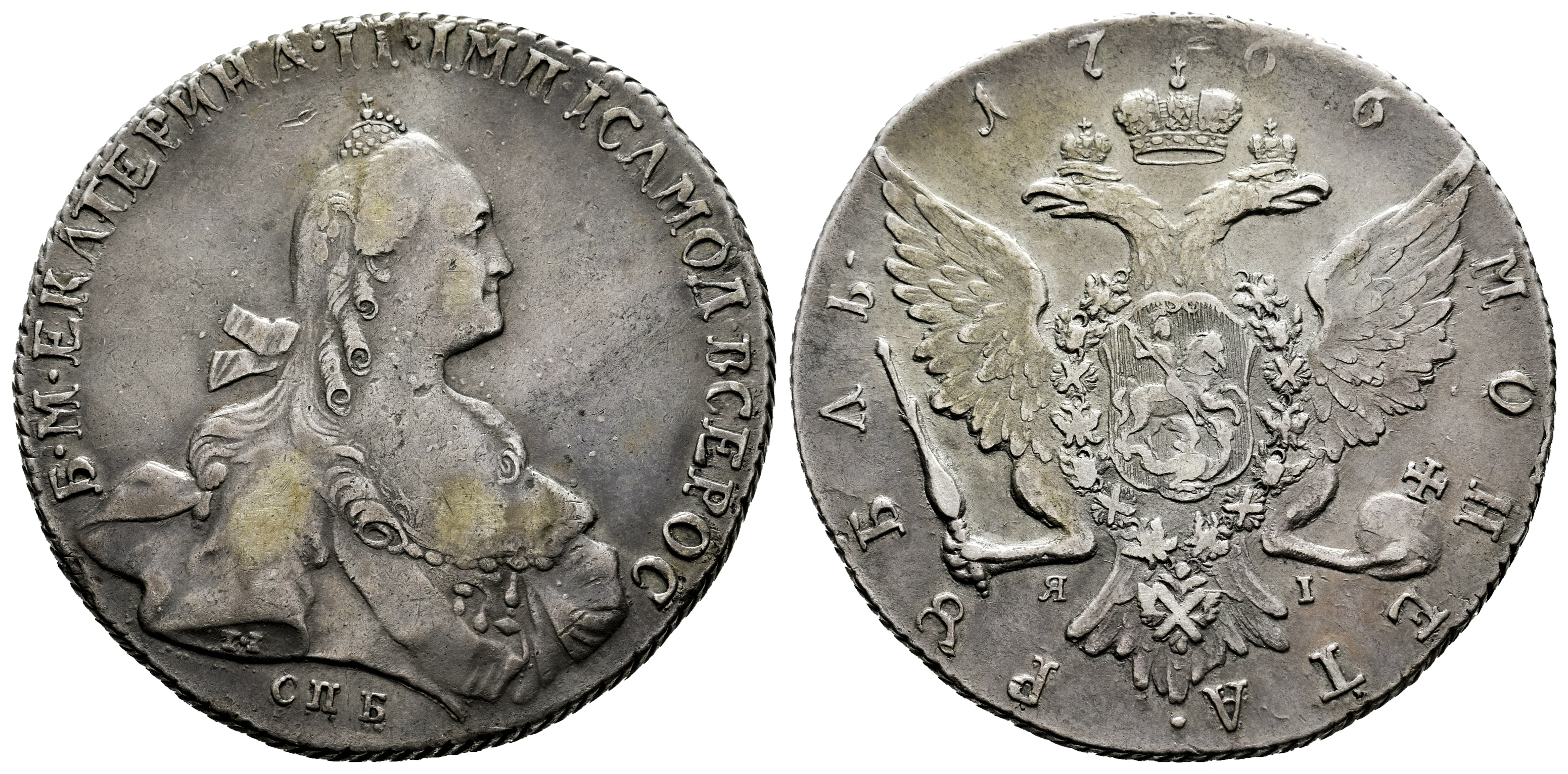 Russia. Catherine II (1762-1796). 1 rouble. 1766. Saint Petesburg. СПБ ЯI. (Km-C#67a.2). Ag. 24,47 g. Choice VF. Est...450,00.