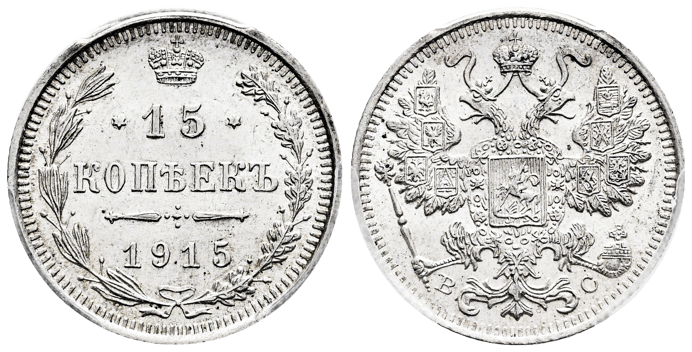 Russia. Nicholas II (1894-1917). 15 kopeks. 1915. Saint Petesburg. BC. (Km-Y#21a). (Bitkin-142). Ag. Slabbed by PCGS as MS 65. Est...40,00.