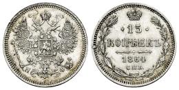 Russia. Alexander II (1855-1881). 15 kopeks. 1864. Saint Petesburg. СПБ ФБ. (Km-Y#21). (Bitkin-189). Ag. 3,08 g. Original luster. XF. Est...30,00.