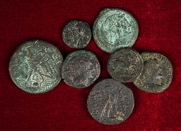 Lot of 7 ancient copper coins: 4 from Ancient Greece, 2 from Hispania, and 1 from the Roman Empire. It is essential a rigorous examination of the lot. ONLY SHIPPING TO SPAIN PENINSULA. NO RETURNS ALLOWED. Choice F. Est...100,00.