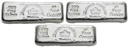 Lot of 3 silver bars of 10 troy ounces each, with a purity of .999. Total weight: 934 g. It is essential a rigorous examination of the lot. ONLY SHIPPING TO SPAIN PENINSULA. NO RETURNS ALLOWED. Est...900,00.