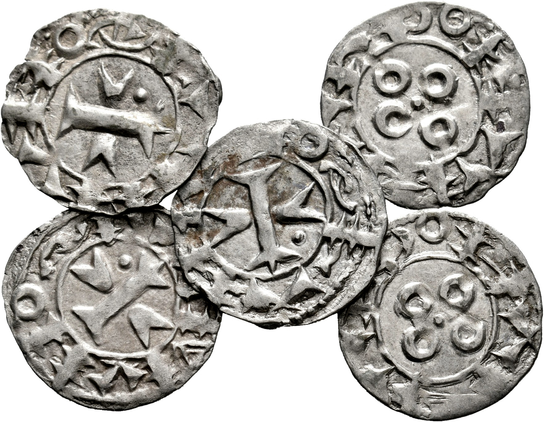 Lot of 5 coins from the County of Melgueil, France. Deniers minted in Maguelonne, 12th-13th century. Ag. It is essential a rigorous examination of the lot. ONLY SHIPPING TO SPAIN PENINSULA. NO RETURNS ALLOWED. Choice VF. Est...200,00.