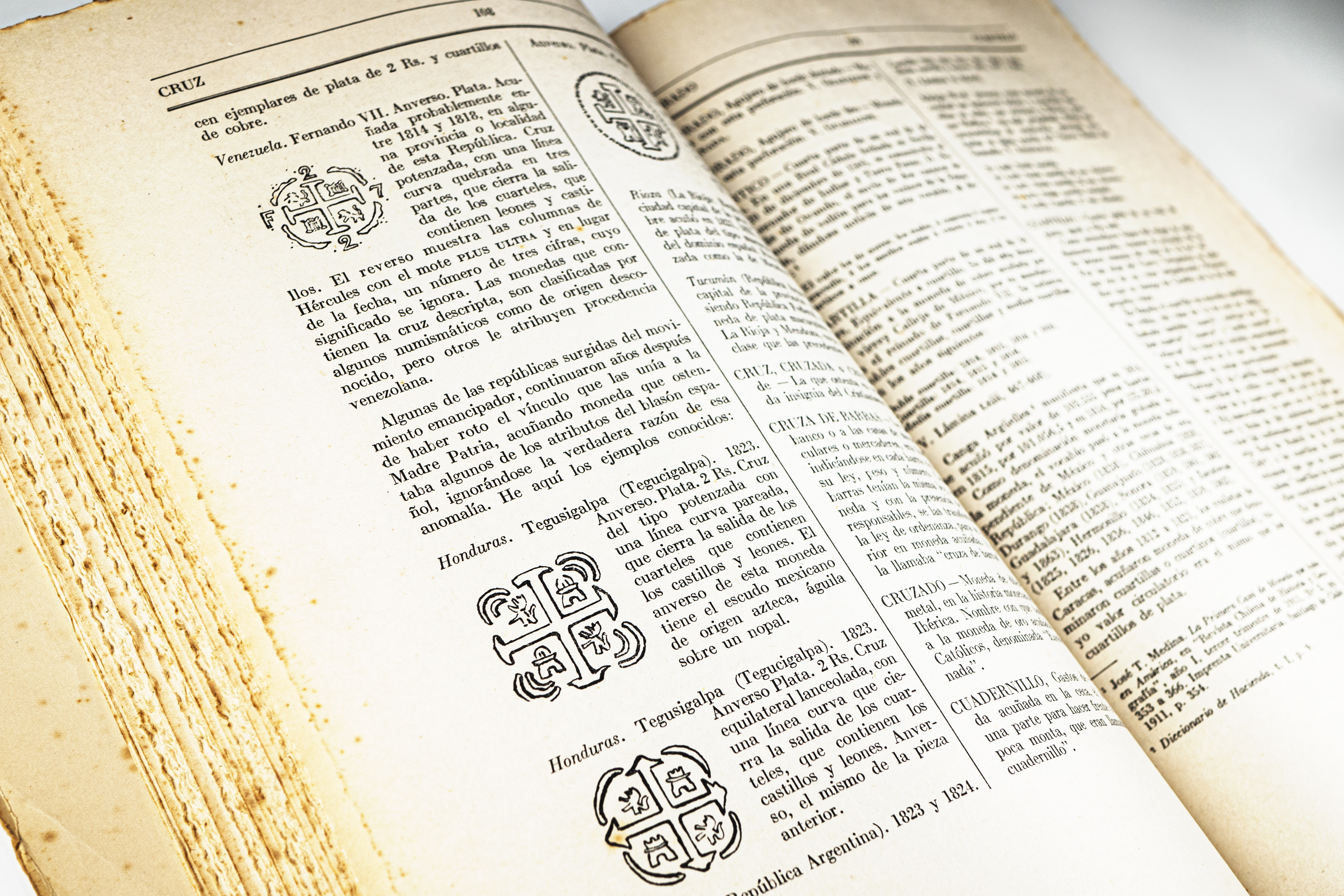 Burzio, Humberto F.: "Diccionario de la Moneda Hispanoamericana". 3 volumes. (Santiago de Chile, 1958). Some humidity stains not affecting the text and a few tears. It is essential a rigorous examination of the lot. ONLY SHIPPING TO SPAIN PENINSULA. NO RETURNS ALLOWED. VF. Est...300,00.