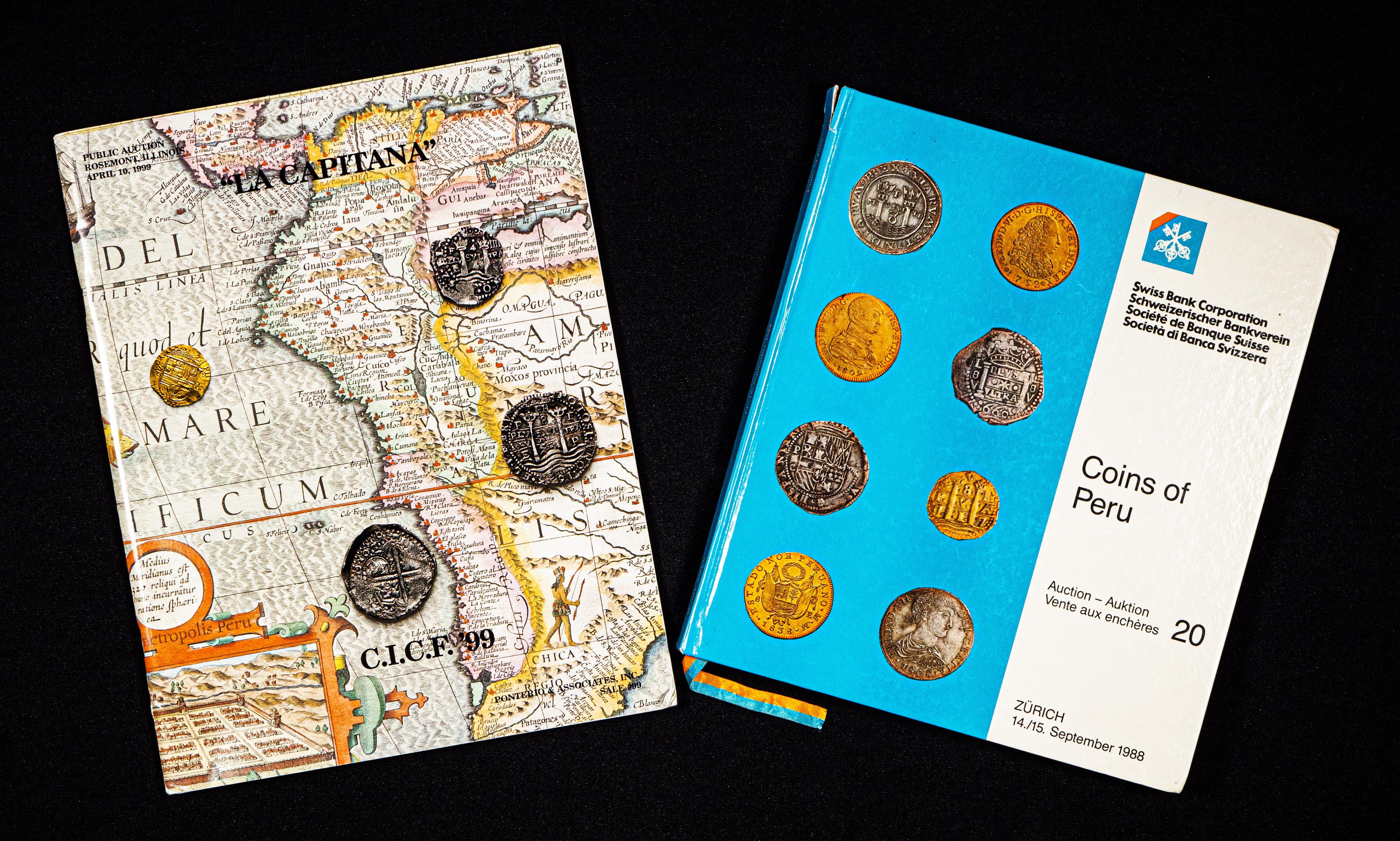 Lot of 2 auction catalogues: Specialized Auction of the Coins of Peru, Swiss Bank Corporation, Zurich (14-15/09/1988); La Capitana Auction, Ponterio & Associates, Inc. (10/04/1999). It is essential a rigorous examination of the lot. ONLY SHIPPING TO SPAIN PENINSULA. NO RETURNS ALLOWED. Est...60,00.