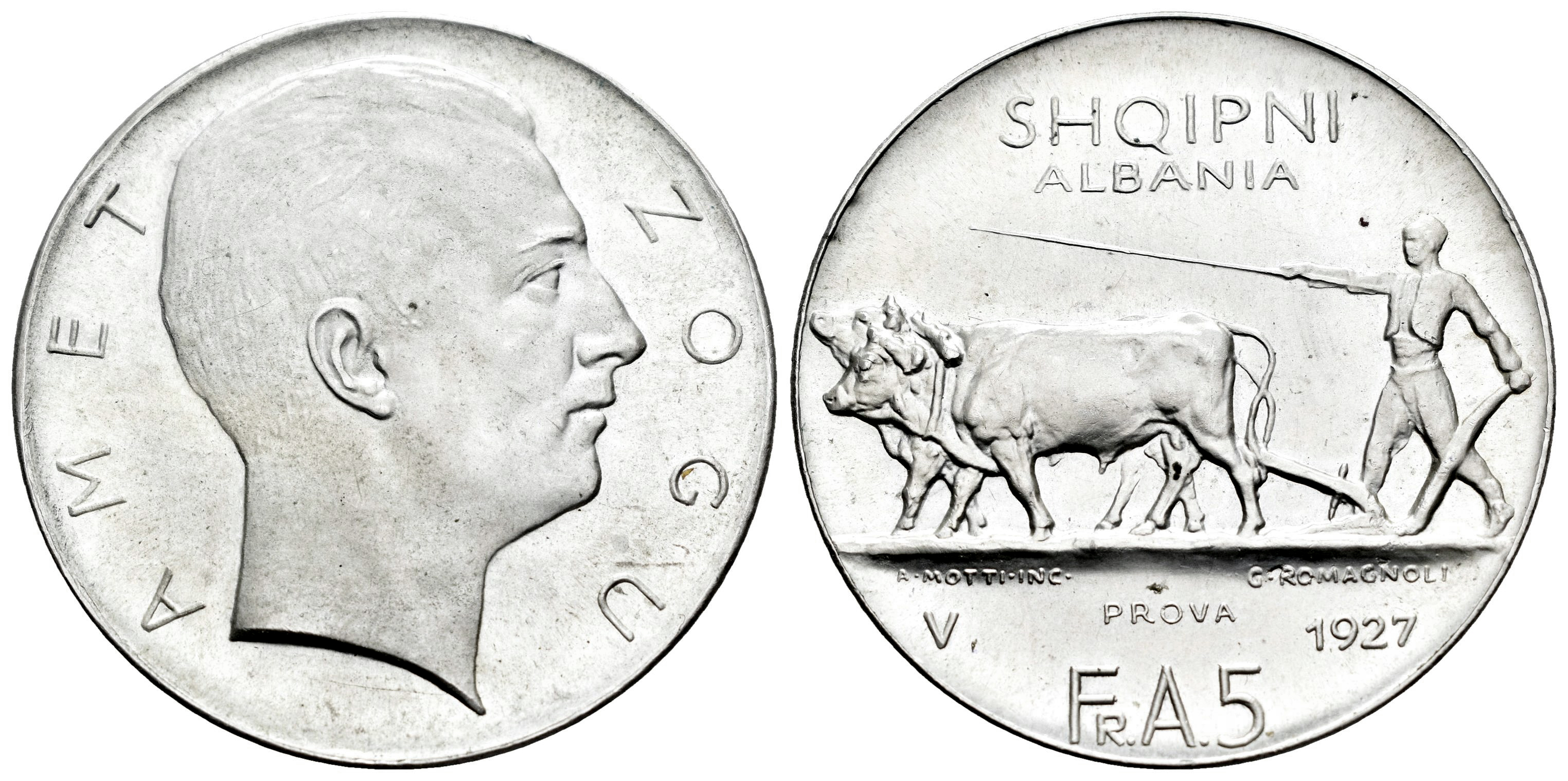 Albania. 5 Franga Ari. 1927. Wien. V. (Km-Pr22). Ag. 24,13 g. Original luster. Very rare. Almost MS. Est...600,00.