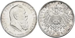 Germany. Bayern. Luitpold, prince regent (1886-1912). 5 mark. 1911. München. D. (Km-999). (Jaeger-50). Ag. 27,76 g. Plenty of original luster. Minimal hairlines. Almost MS. Est...120,00.