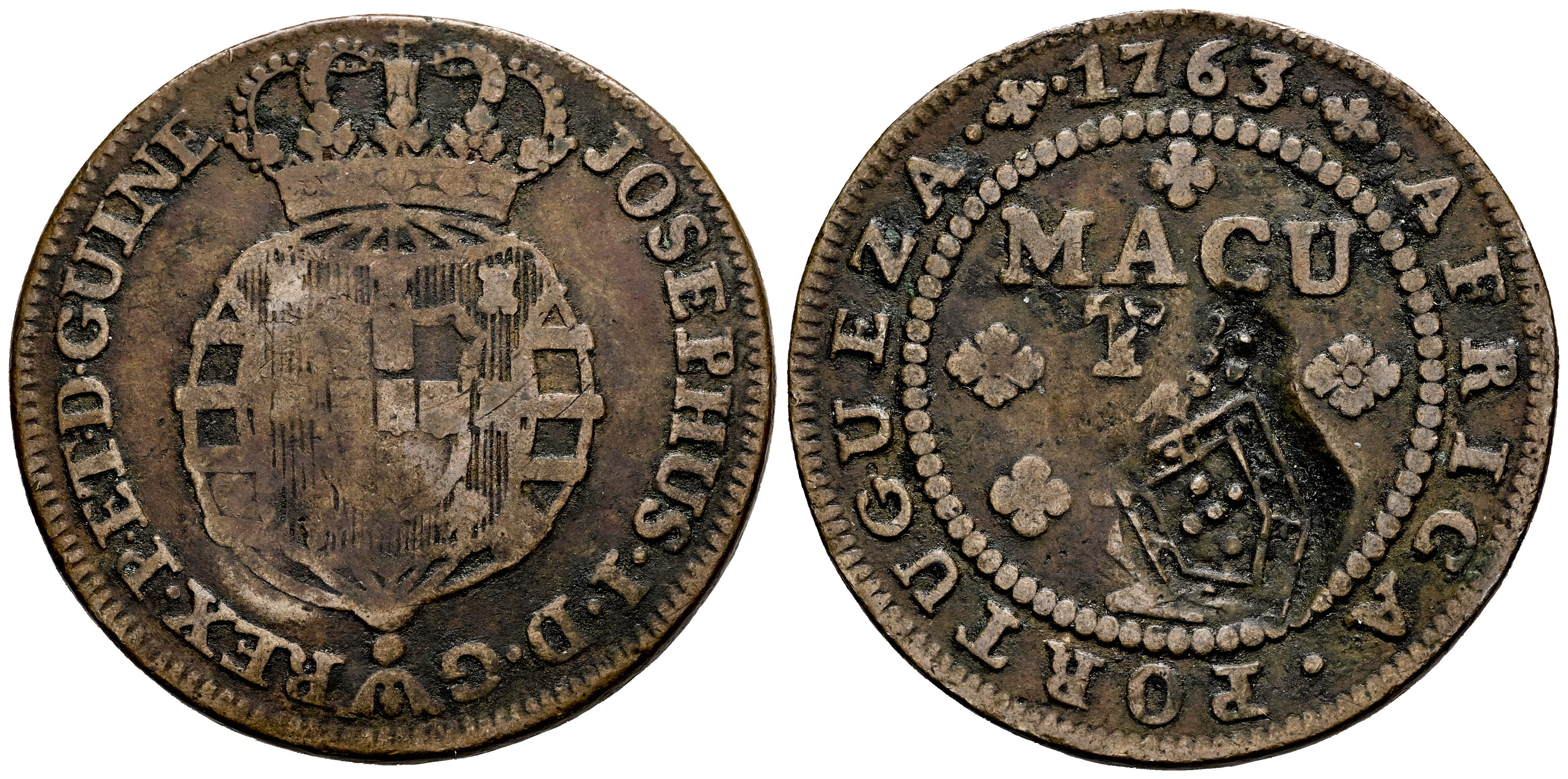 Angola. D. José I (1750-1777). 1/2 macuta. 1763. (Gomes-07.02). (Km-50.1). Ae. 19,15 g. Countermark (Carimbo) with crowned escutcheon 1837 of D. María II (1834-1853). Almost VF/VF. Est...40,00.