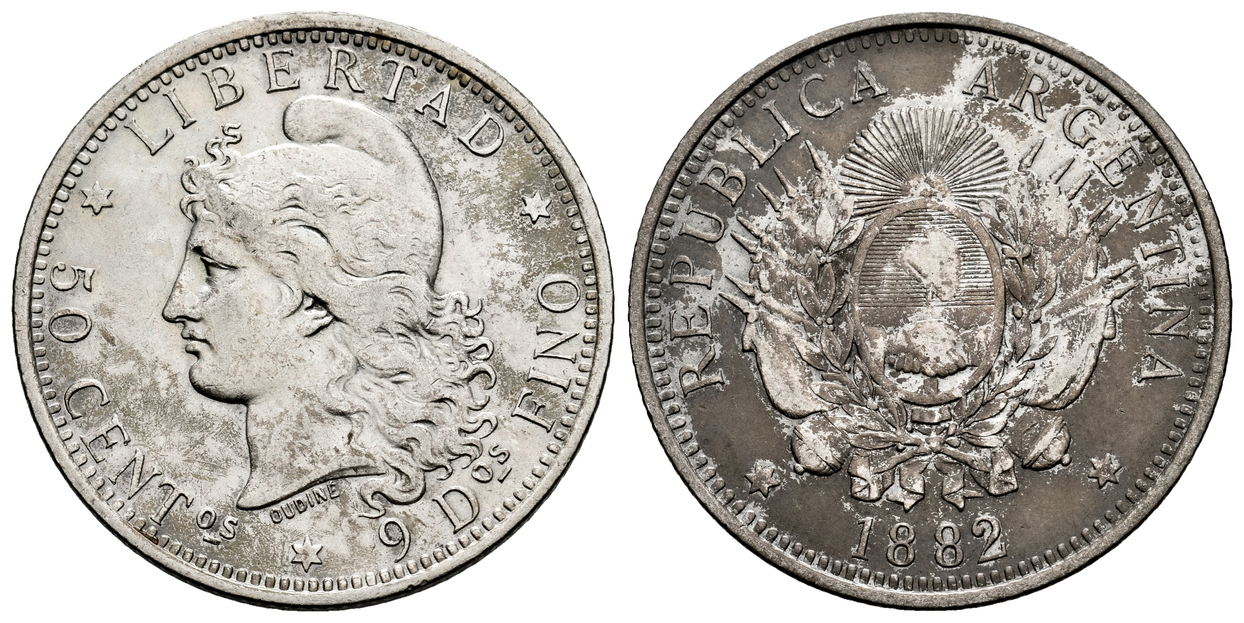 Argentina. 50 centavos. 1882. (Km-28). (CJ-16). Ag. 12,42 g. Cleaned. Choice VF. Est...45,00.