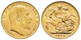 Australia. Edward VII. 1 sovereign. 1906. Perth. P. (Km-15). (Fr-32). Au. 8,00 g. Original luster. XF/AU. Est...600,00.