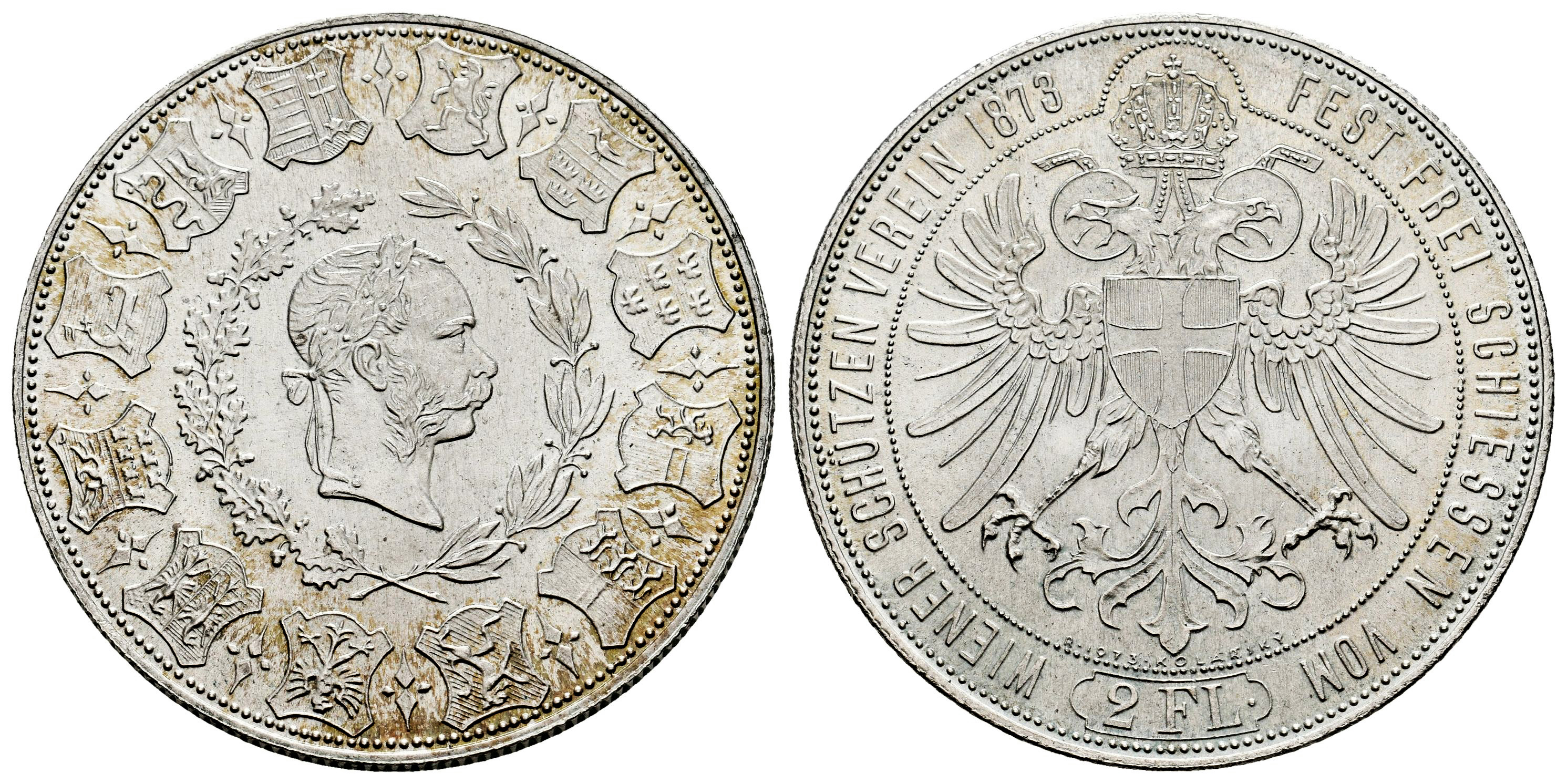 Austria. Franz Joseph I (1848-1916). Double florin. 1973. Ag. 24,06 g. Official restrike for the shooting ceremonial of the Vienna Shooting Club on the 25th anniversary of the Emperor's reign. Plenty of original luster. Mint state. Est...200,00.
