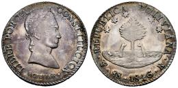 Bolivia. 8 soles. 1846. Potosi. R. (Km-103). Ag. 26,97 g. Delicate patina. Sligthly iridiscent tone. Attractive. Choice VF. Est...100,00.