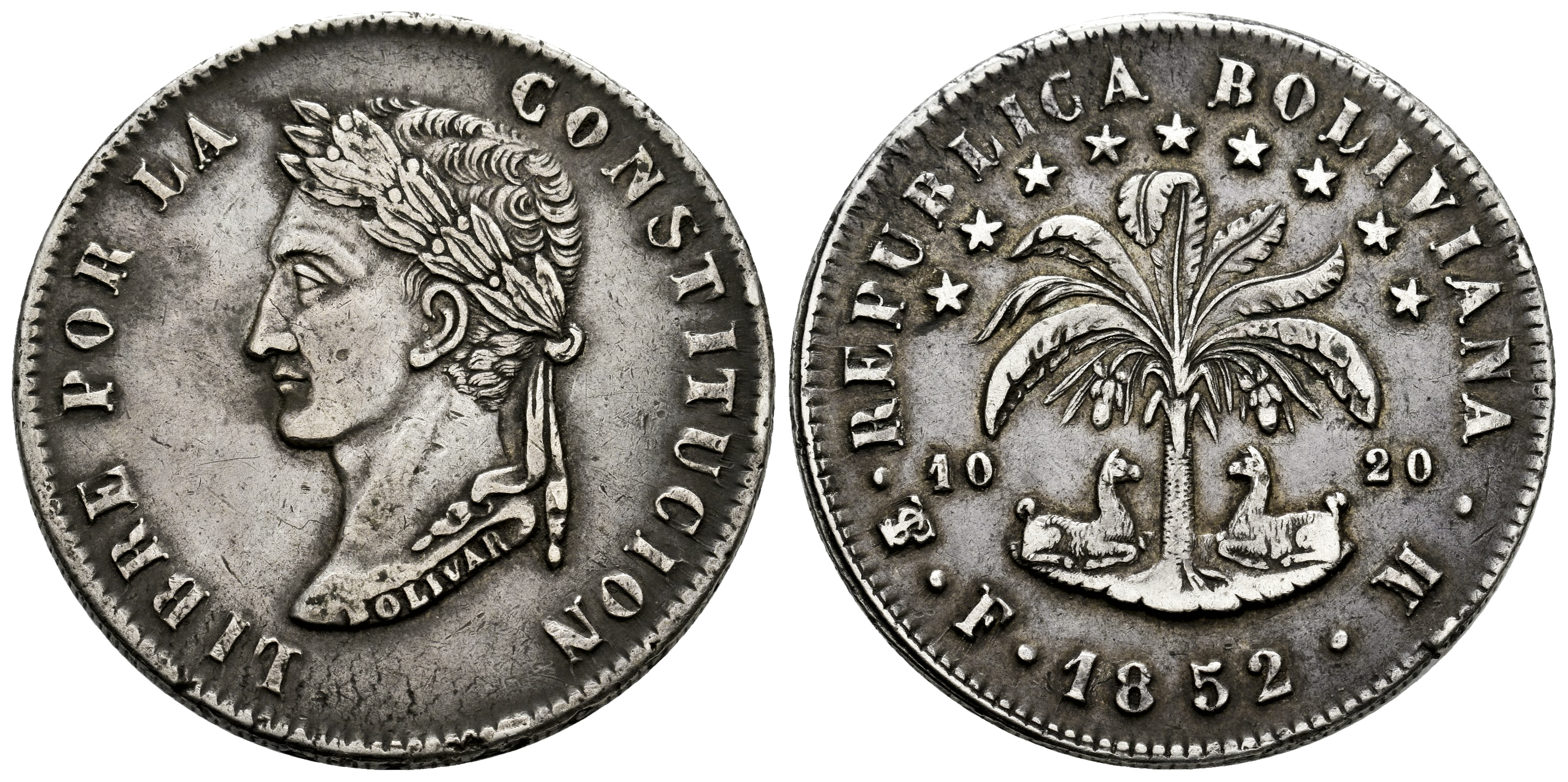 Bolivia. 8 soles. 1852. Potosi. M. (Km-112.1). Ag. 27,02 g. Patina. Almost XF/Choice VF. Est...200,00.