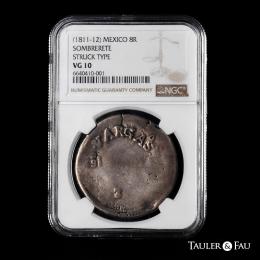 Ferdinand VII (1808-1833). 8 reales. (1811-1812). Sombrerete de Vargas. (Cal-Type 343). Ag. Date not visible but exhibiting most details fully discernible, including “VARGAS” despite central wear around date and nearly complete shield with fully defined “SOMBRERETE”. Slabbed by NGC as VG 10. Est...1200,00.