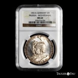 Germany. Prussia. Wilhelm II (1888-1918). 5 mark. 1901. Berlin. A. (Km-526). (AKS-135). (Jaeger-106). Ag. Full luster and slight tone. Slabbed by NGC as MS 64. Est...300,00.