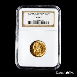 Australia. Edward VII. 1 sovereign. 1904. Melbourne. (Km-15). (S-3971). Au. Original luster. Slabbed by NGC as MS 61. Est...1000,00.