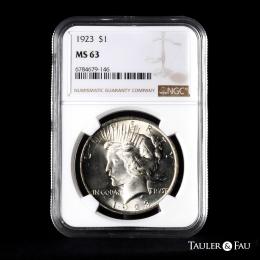 U.S. Coins. Peace Dollar. 1 dollar. 1923. Philadelphia. (Km-150). Ag. Slabbed by NGC as MS 63. Original luster. Est...70,00.