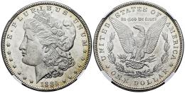 U.S. Coins. Morgan Dollars. 1 dollar. 1885. Philadelphia. (Km-110). Ag. Slabbed by NGC as MS 62. Original luster. Est...90,00.