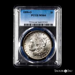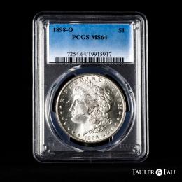 U.S. Coins. Morgan Dollars. 1 dollar. 1898. New Orleans. O. (Km-110). Ag. Plenty of original luster. Slabbed by PCGS as MS 64. Est...100,00.