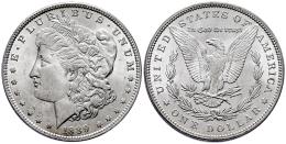 U.S. Coins. Morgan Dollars. 1 dollar. 1899. New Orleans. O. (Km-110). Ag. 26,71 g. Minor scratches. Minor nicks on edge. Slight tone in reverse. XF. Est...50,00.