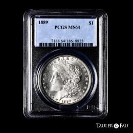 U.S. Coins. Morgan Dollars. 1 dollar. 1889. Philadelphia. (Km-110). Ag. Plenty of original luster. Slabbed by PCGS as MS 64. Est...120,00.