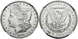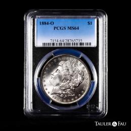 U.S. Coins. Morgan Dollars. 1 dollar. 1884. New Orleans. O. (Km-110). Ag. Plenty of original luster. Slabbed by PCGS as MS 64. Est...100,00.