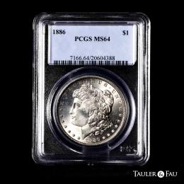 U.S. Coins. Morgan Dollars. 1 dollar. 1886. Philadelphia. (Km-110). Ag. Plenty of original luster. Slabbed by PCGS as MS 64. Est...100,00.