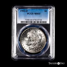 U.S. Coins. Morgan Dollars. 1 dollar. 1902. New Orleans. O. (Km-110). Ag. Original luster. Slabbed by PCGS as MS 64. Est...90,00.