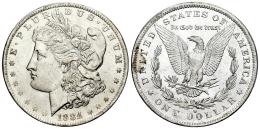 U.S. Coins. Morgan Dollars. 1 dollar. 1884. New Orleans. O. (Km-110). Ag. 26,70 g. Minor mark on the bust. Original luster. AU/Almost MS. Est...70,00.