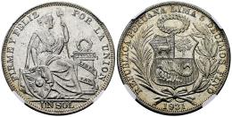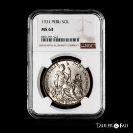 Peru. 1 sol. 1931. Lima. (Km-218). Ag. Original luster. Slabbed by NGC as MS 63. Est...80,00.