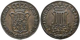 Isabel II (1833-1868). 6 cuartos. 1838. Barcelona. (Cal-18). Ae. 14,03 g. MBC+. Est...50,00.