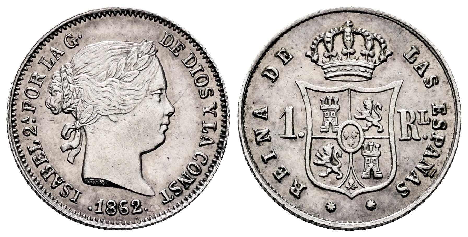 Isabel II (1833-1868). 1 real. 1862. Barcelona. (Cal-289). Ag. 1,35 g. Ligeramente limpiada. EBC-. Est...35,00.