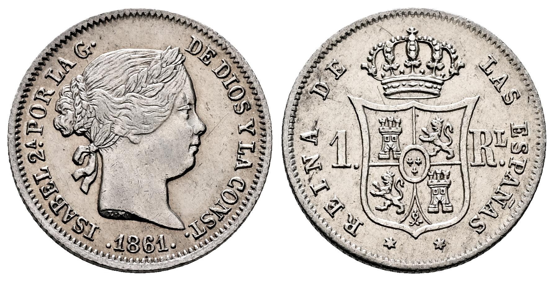 Isabel II (1833-1868). 1 real. 1861. Madrid. (Cal-310). Ag. 1,24 g. Restos de brillo original. EBC-. Est...70,00.
