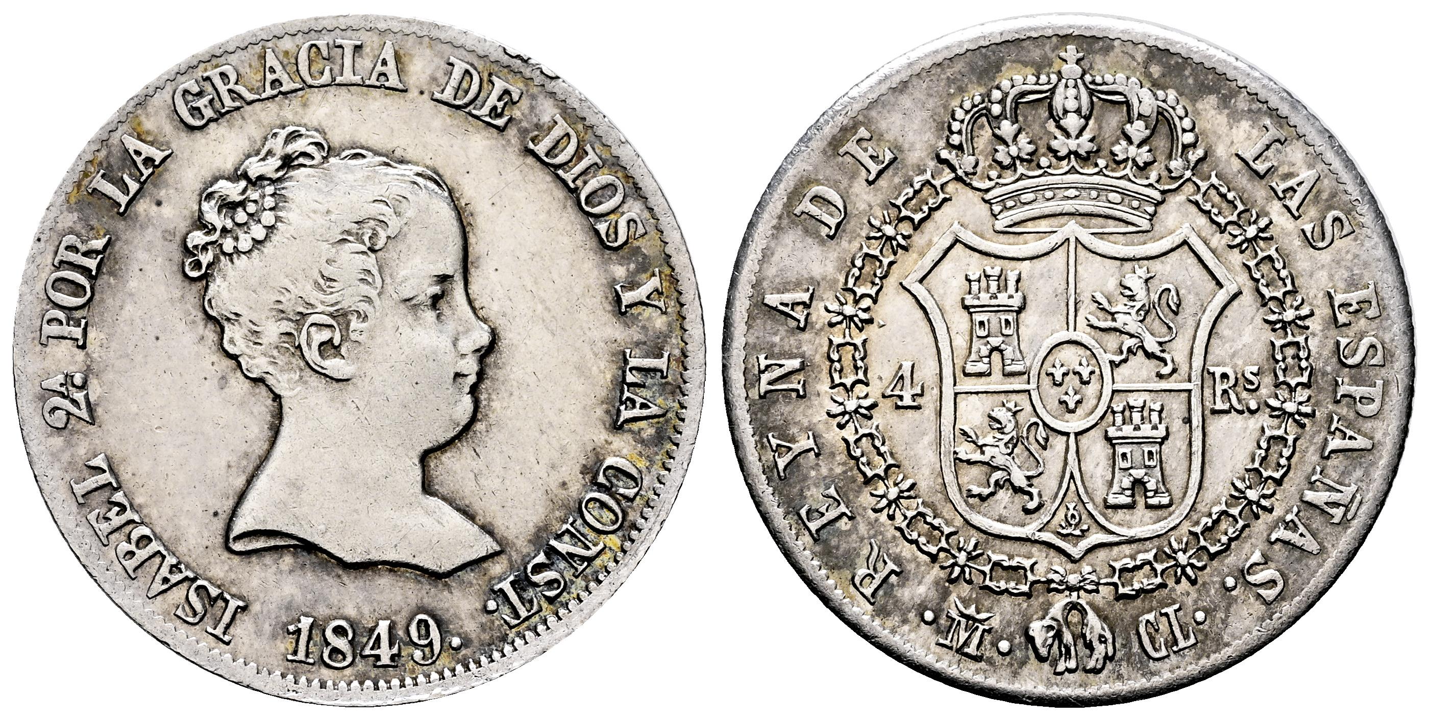 Isabel II (1833-1868). 4 reales. 1849. Madrid. CL. (Cal-454). Ag. 5,22 g. Suaves rayitas. Brillo original. Escasa en esta conservación. EBC-/EBC. Est...80,00.